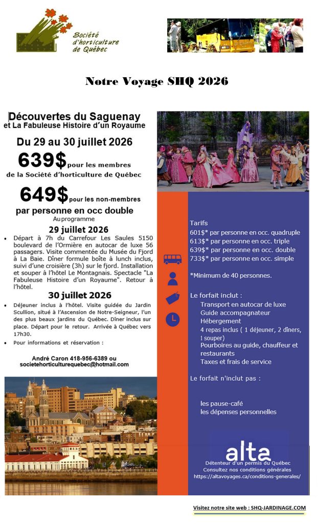 - Cette conférence est offerte gratuitement aux membres des jardins communautaires et des sociétés d’horticulture par la Ville de Québec